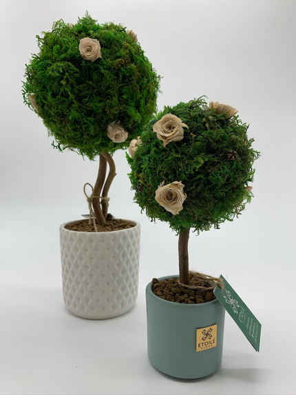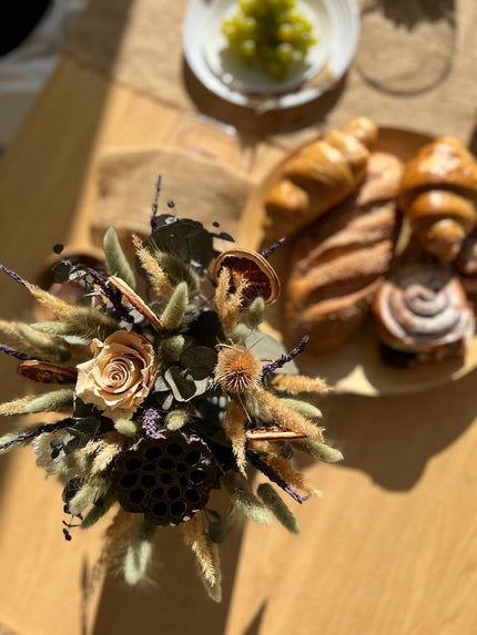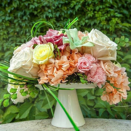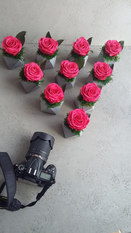 What it is: Sculptural arrangements built from preserved (stabilized) roses and botanicals, designed as long-life centerpieces.