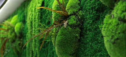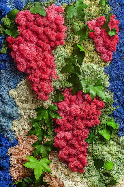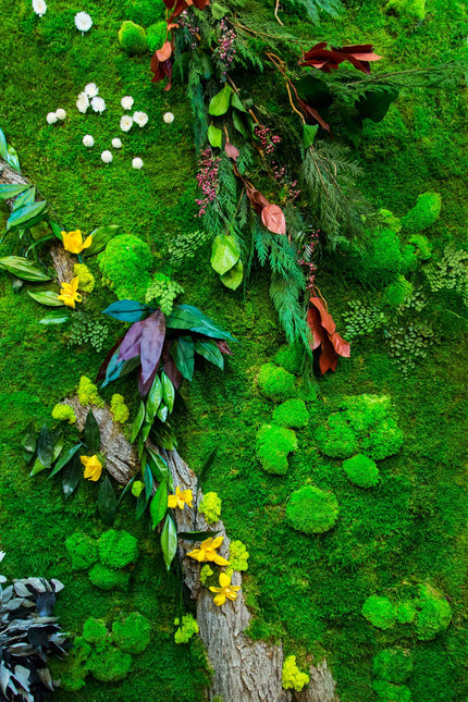 Materials & Care: preserved moss/foliage/occasional roses on lightweight panels; no water; dust with soft brush/air; avoid direct sun.