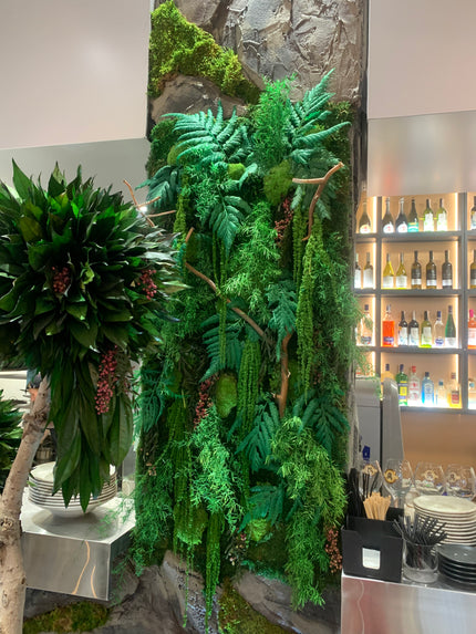 What it is: Lifesize preserved trees and plant forms for interiors and covered decks — natural presence, zero watering.